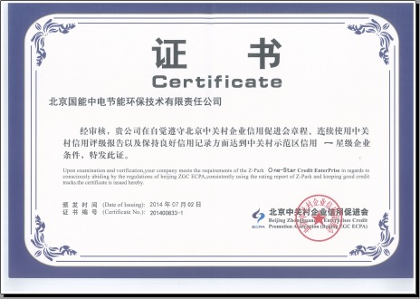 當前位置: 國能中電公司動態(tài)> 熱烈祝賀我公司榮獲“中關(guān)村示范區(qū)信用一星級企業(yè)證書”